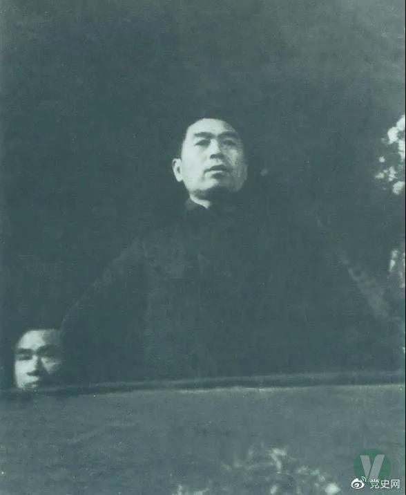 圖為周恩來在中國共產黨第七次全國代表大會上發言。
