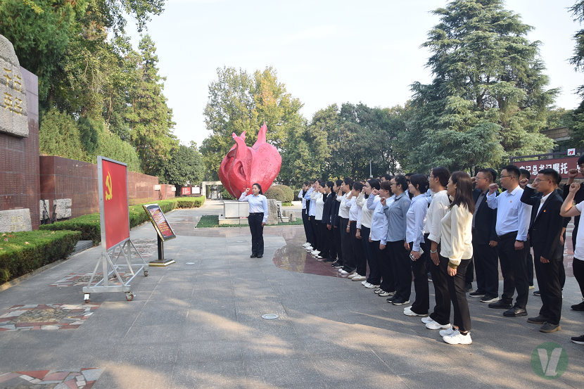 在鄂豫皖蘇區烈士陵園,黨員們集體向革命烈士紀念碑敬獻花籃,一幅幅珍貴的歷史照片,一尊尊栩栩如生的雕塑,一件件感人肺腑的故事,把同志們的思緒帶回到那戰火紛飛、艱苦卓絕的崢嶸歲月,讓大家身臨其境感受到鄂豫皖蘇區“28年紅旗不倒”紅色精神躍動和傳承。隨后,在英烈廣場英雄紀念墻前,全體黨員集體重溫入黨誓詞。